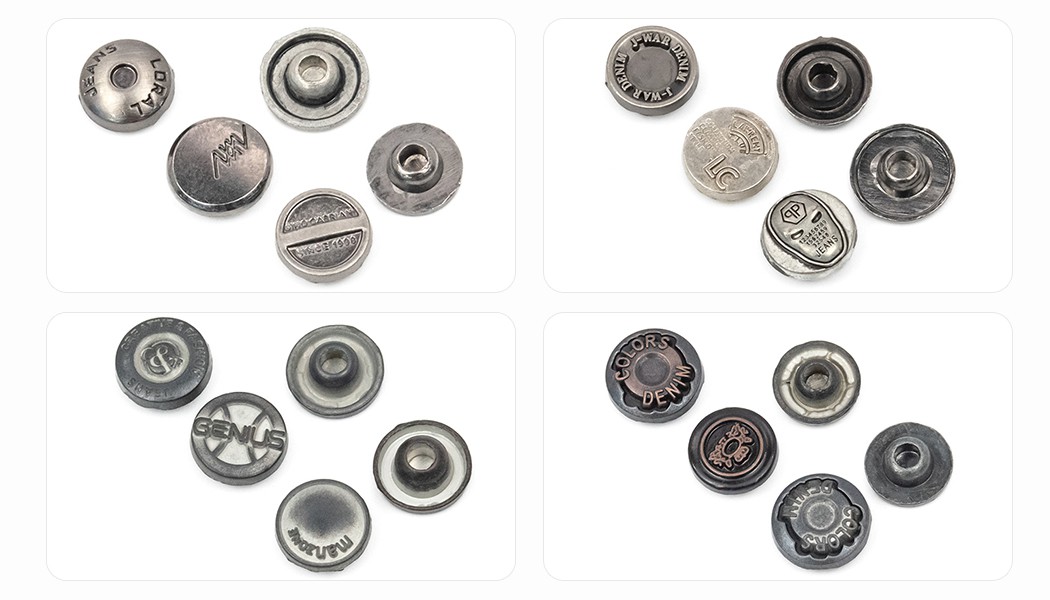 Lawv nto tuaj yeem muaj electroplating, roj txhaj tshuaj, silk screen luam ntawv, laser, kua nplaum, thiab lwm yam. Yuav kom ua lub luag haujlwm zoo nkauj zoo nkauj, peb tuaj yeem ntxiv cov pob zeb diamond cuav, cov ntawv laser, milling qauv, thiab lwm yam. Yog li, nws yuav zoo nkauj dua li no. Tam sim no, cov nyees khawm thiab rivets muaj ntau yam siv. Qee cov khaub ncaws xws li, lossis cov ntaub tuab, kuj tseem yuav siv I-khawm. Qee qhov yog rau kev kho kom zoo nkauj, qee qhov yog rau cov hom phiaj tswv yim.